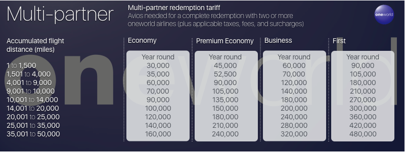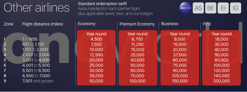 *Awards in North America less than 650 miles in length will start pricing at 7,500 miles. You can also book non-Oneworld members Aer Lingus, Alaska Airlines, flybe and Meridana with Avios. Alaska, Meridana, and Aer Lingus won't show award space online.