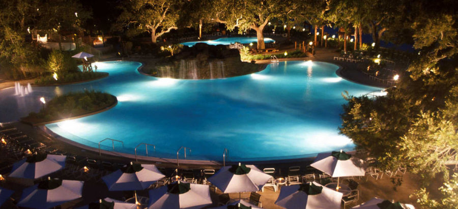 The beautiful pool area at the Grand Hotel Marriott near Mobile, Alabama.