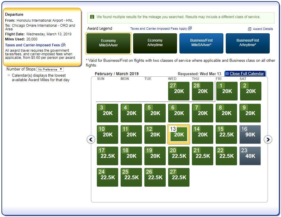 American award inventory had a reputation in the past for being far too stingy, but that has improved quite a bit in the last year, as evidenced by this Hawaii springtime off-peak availability.