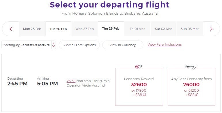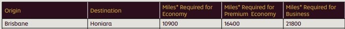 HIR | BNE | 10,900 | Etihad (via Amex) | $63 |