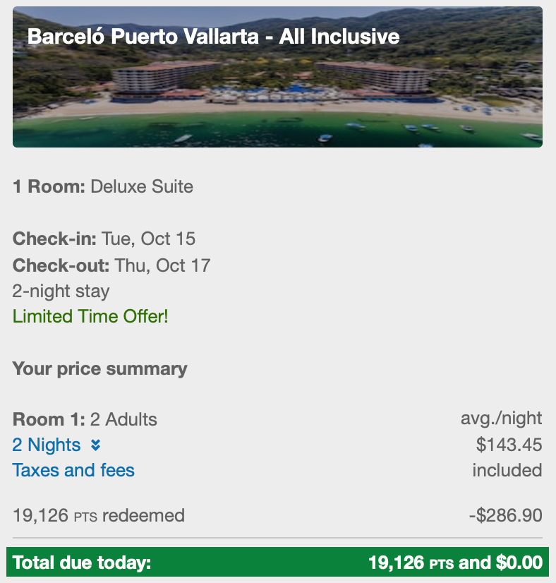 I experienced this scenario when I was tasked with booking my family of four adults into an all-inclusive resort for a two-night weekend getaway. I'm not overly familiar with booking all-inclusive resorts with points, but I know that many large hotel chains operate them. Puerto Vallarta, where we were heading, is full of such resorts.