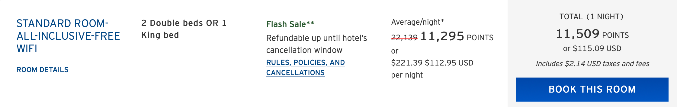 With the fourth night free, we'd end up paying right around 35,000 points for each room, for a total of 69,054 Citi ThankYou points for two rooms for four nights (if we'd been staying for four nights). While this isn't as phenomenal a redemption as booking through the Chase portal, it is a good option if you have ThankYou points to spare, especially because Citi doesn't have any hotel transfer partners.