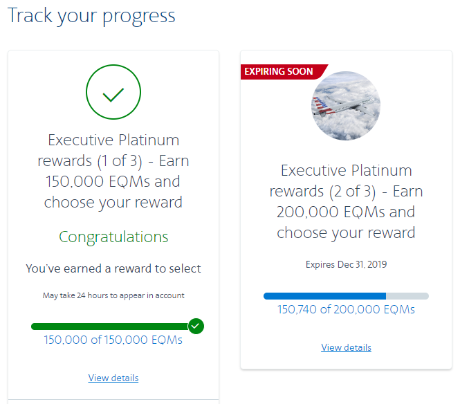 So, if you're just short of one of these thresholds, it might be worth fitting in an additional trip before the end of the year to earn some of these valuable benefits. And, that's just what I did. I just surpassed the 150,000 EQM threshold just this week: