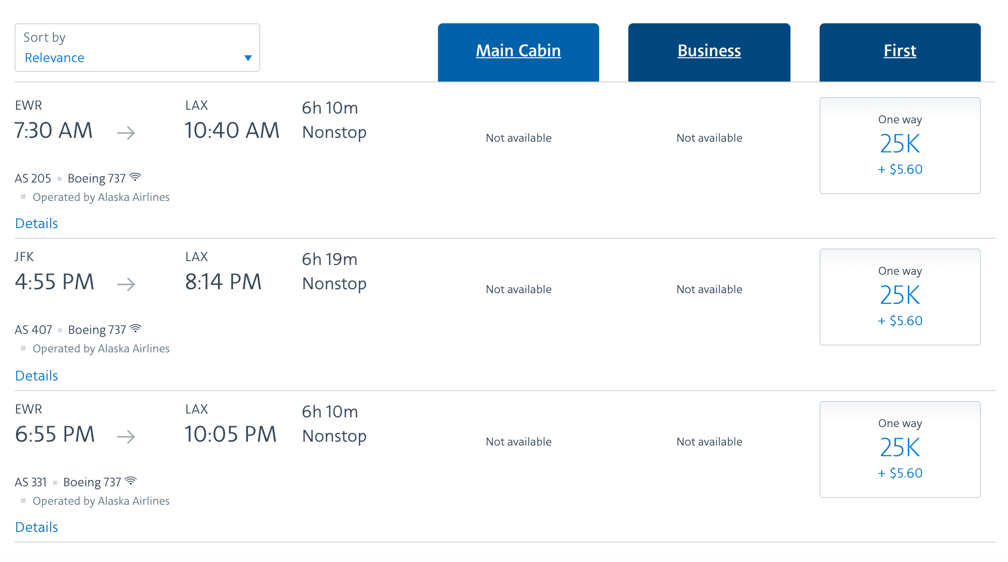 As of today, you're still able to redeem AAdvantage miles for Alaska-operated flights and Alaska miles for American-operated flights, like these first-class award tickets using American miles from New York-JFK to Los Angeles (LAX) in August:
