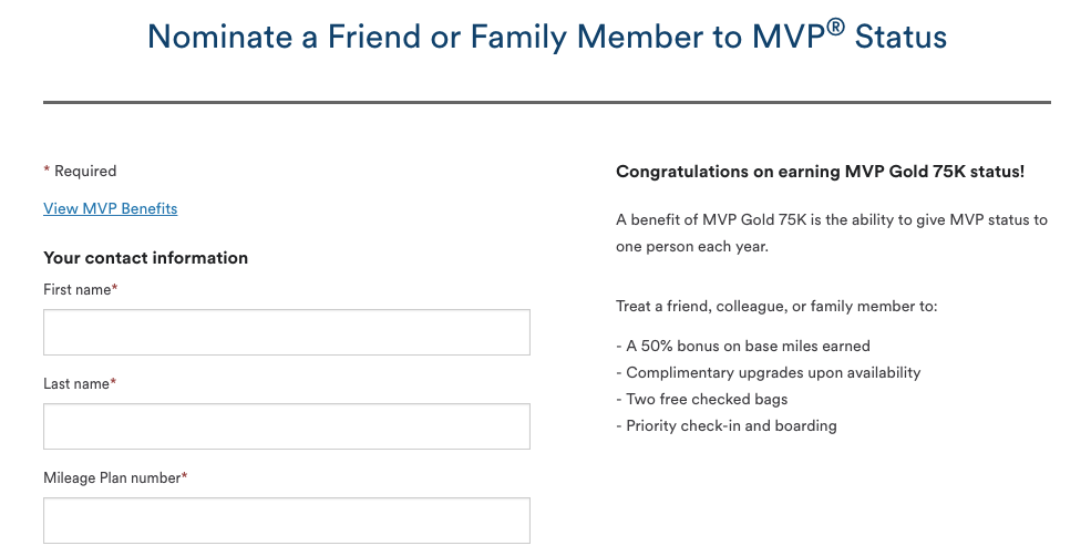 Extend MVP Status — MVP Gold 75K members can also give MVP elite status to a friend or family member.