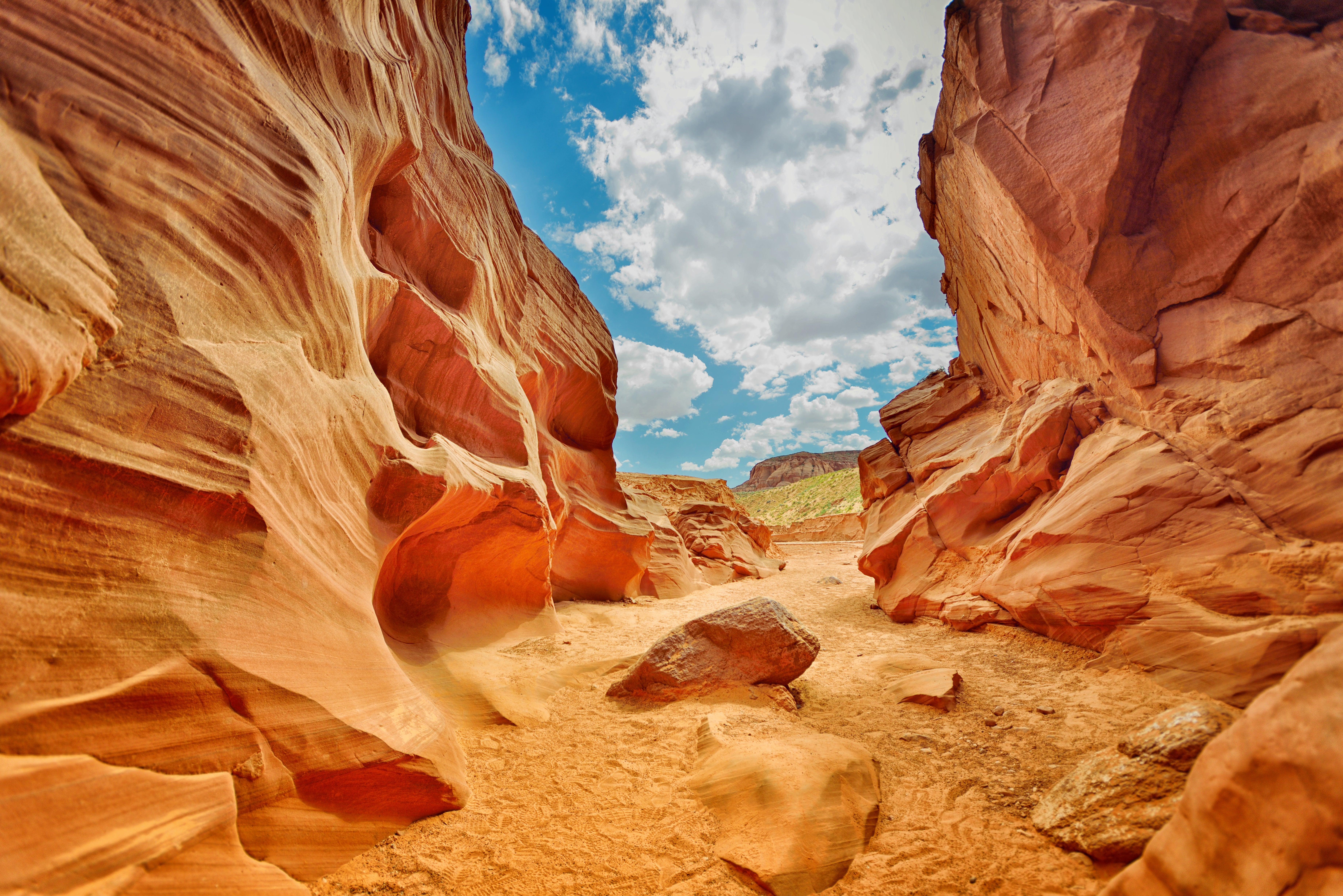 Slot canyons are narrow passageways created by the flow of water over and through sandstone and limestone surfaces. They are characteristically much deeper than they are wide and usually seem to be created through the force of flash floods rather than a consistent stream.