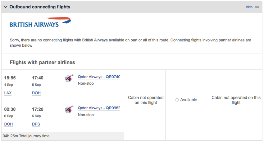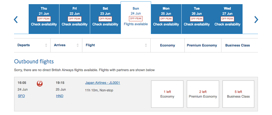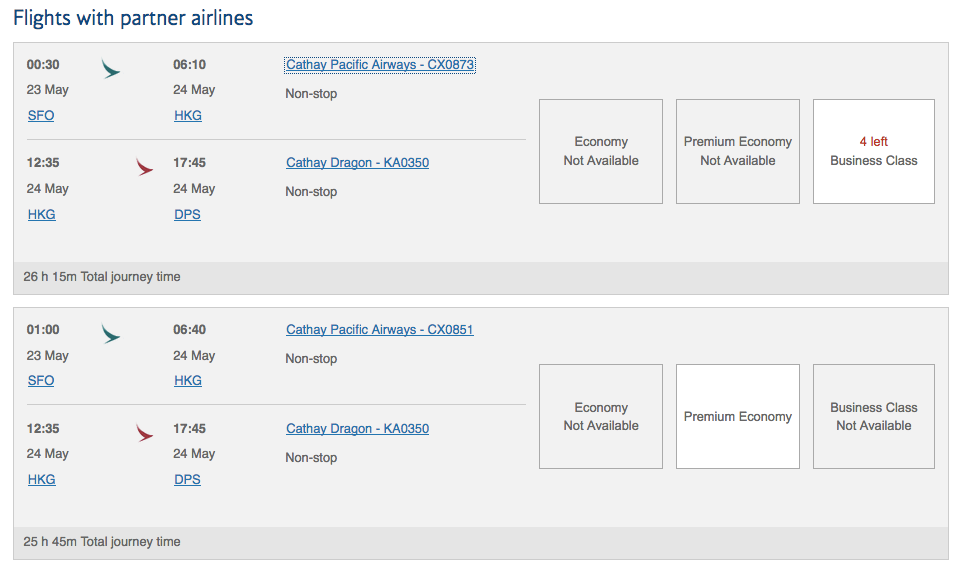 Now for the other drawback. American's website doesn't display award availability for JAL, Malaysia Airlines or Cathay Pacific, so I'd suggest using BritishAirways.com instead. It can be a bit clunky, but it does a good job at rounding up Oneworld award availability.