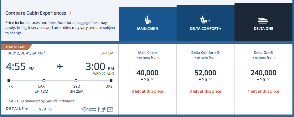 Interestingly enough, most of the rock-bottom 40,000-mile saver availability I'm finding actually routes you through Australia on Delta's own Los Angeles-Sydney flight then routes you to Bali on Garuda from there. Personally, I'd rather spend 5,000 more miles to save a lot of travel time, though.