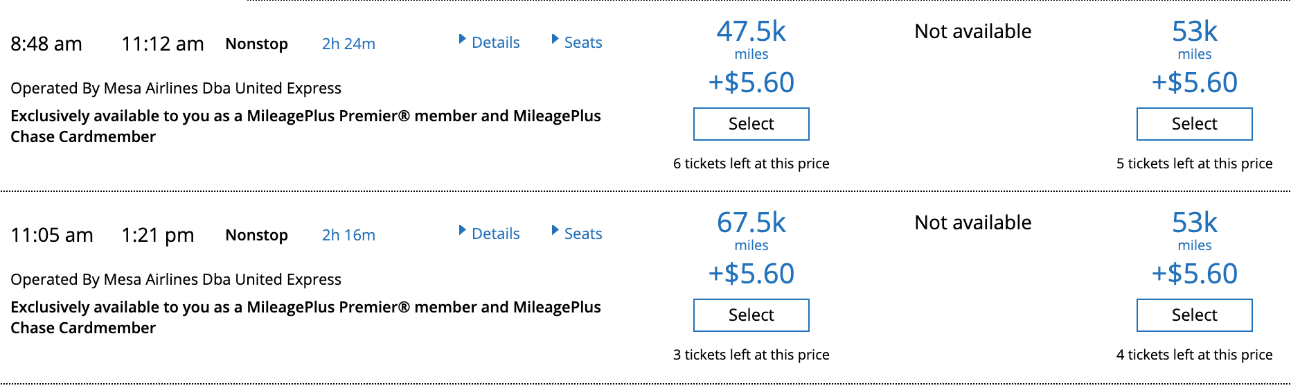 However, when pricing the trip as one-way awards, United did have the outbound flight available for 12,000 miles one-way, which was a fair price.