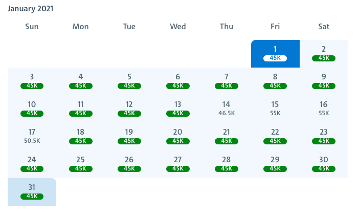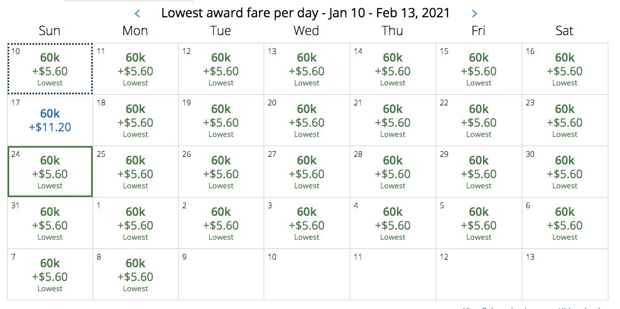 Because flight award prices are so variable, it can be hard to spot a good deal when you are new to this way of traveling. Assuming you have the luxury of choice, you'll want to search a few different dates and possibilities to see the range of normal award prices, and you'll also want to do some math.