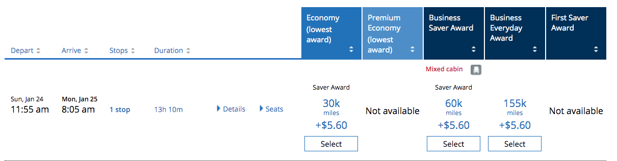 In total, by doing some basic math and running a few searches with different booking methods, we spent a total of 30,000 points and miles for the two one-way United flights, which is less than if we booked it all as one traditional award flight from United.