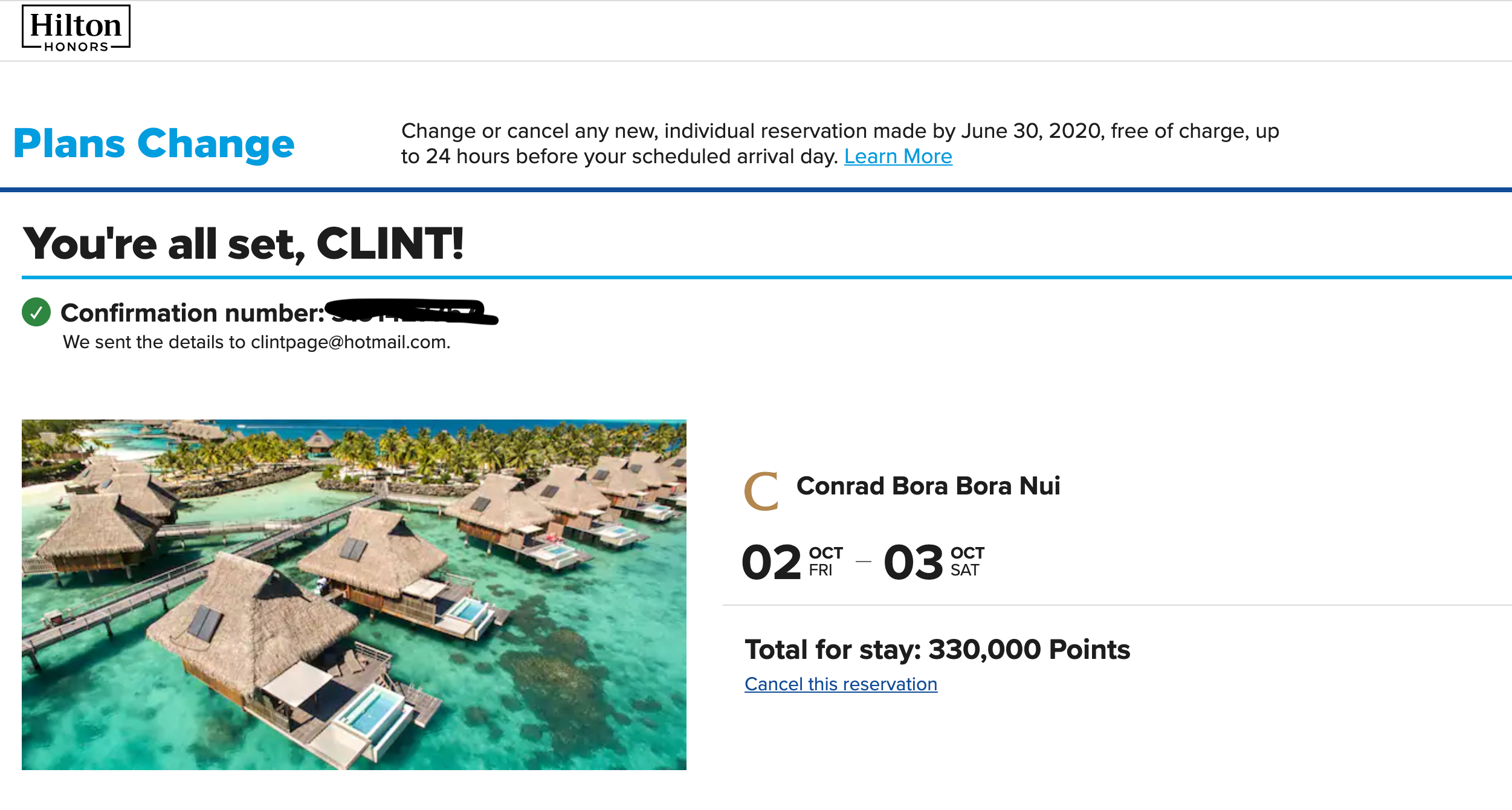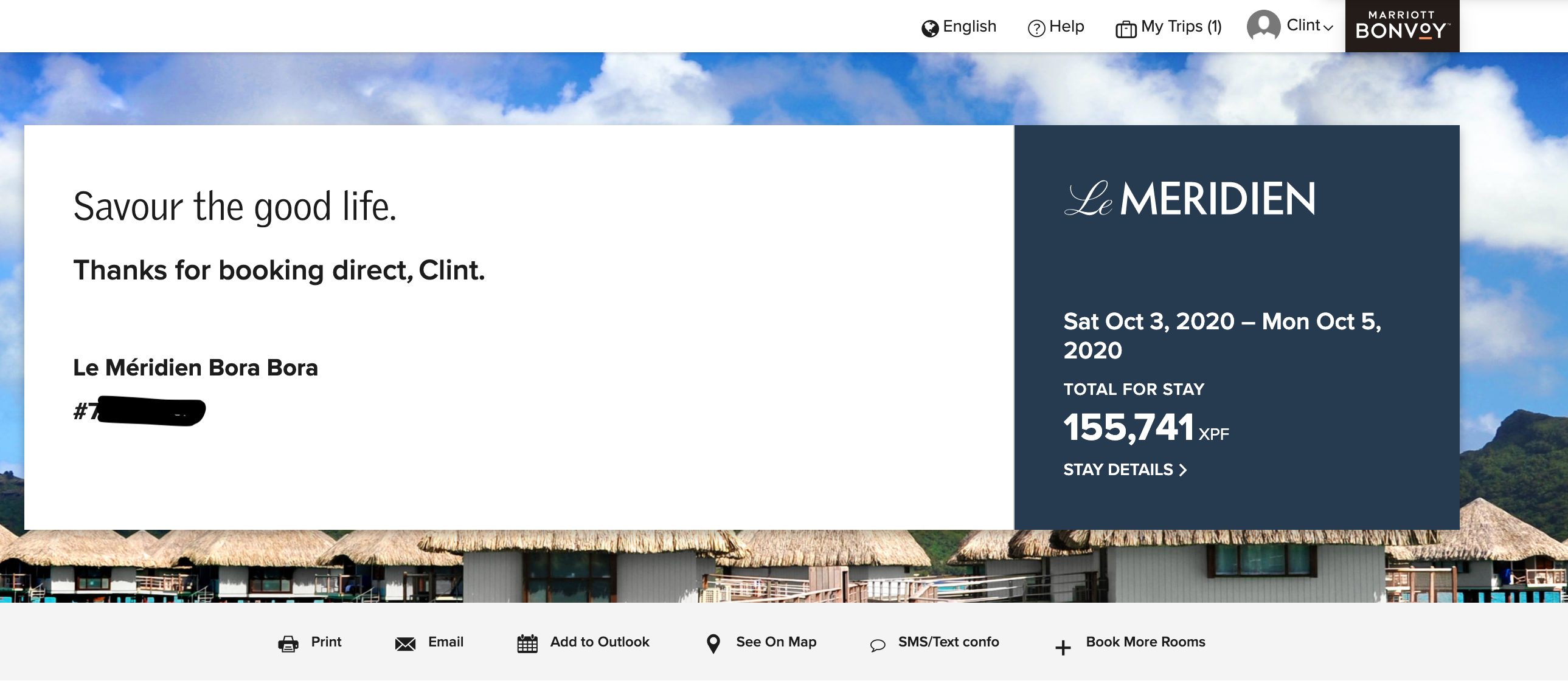 Next up? Rebooking my hotels. The original plan was to review the Le Méridien Bora Bora, staying for two nights, and then to spend two nights at Hilton's Conrad Bora Bora.