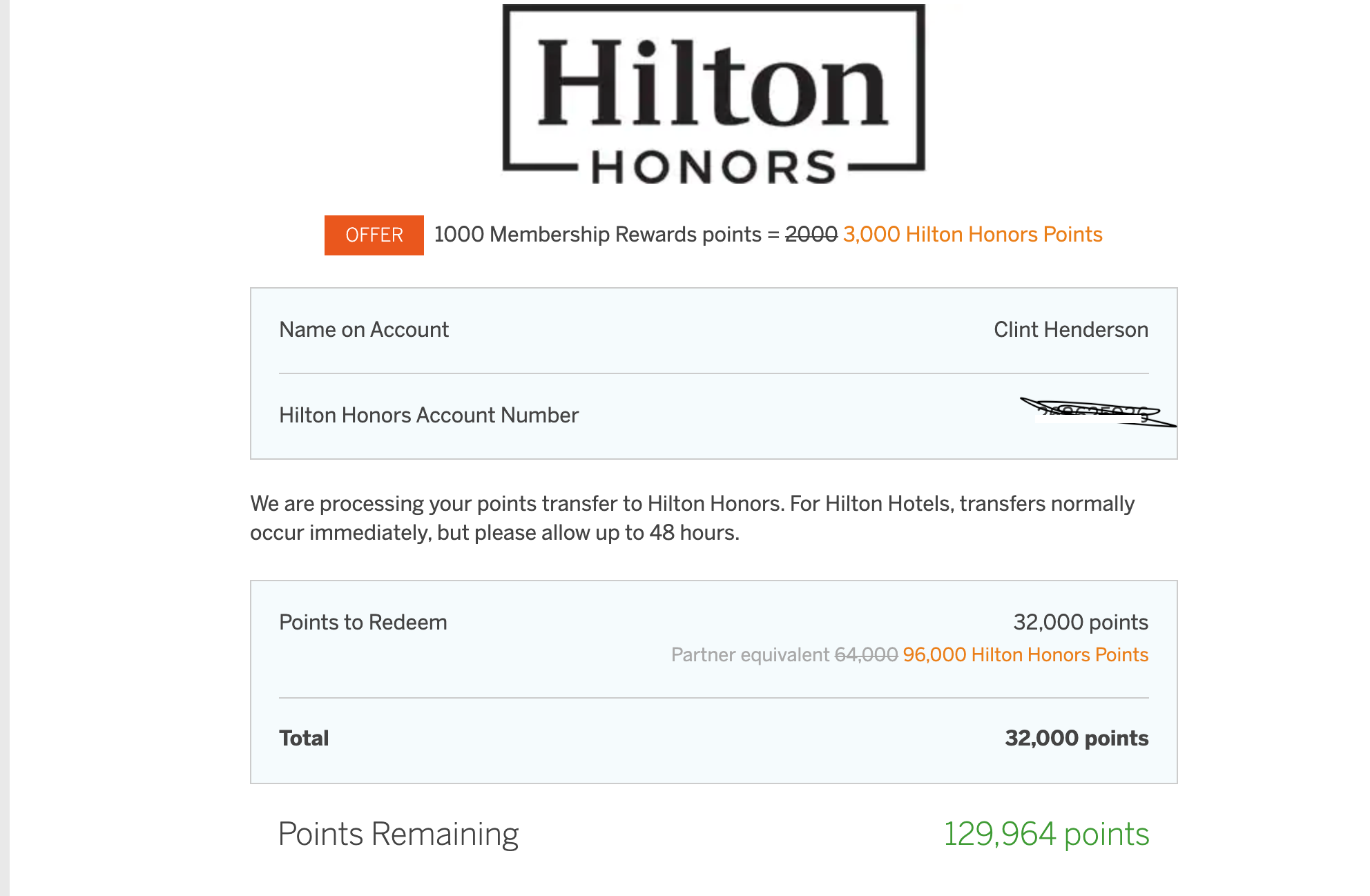 Normally, TPG doesn't recommend transferring Amex points to Hilton, but in this case, it would have been more than $1,000 to stay there so I took the reduced redemption. I blew 330,000 Hilton points for one night's stay. Ouch.