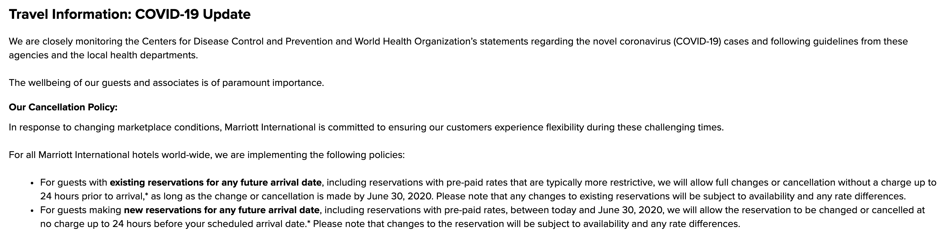 I was worried about booking the much-cheaper prepay rates, but reading TPG's updated guide to cancellation policies in the age of coronavirus made me feel better since most major chains are now agreeing to waive cancellation or fees for rebooking or cancelling reservations outright. These policies are much more liberal than normal prepay reservation booking policies.