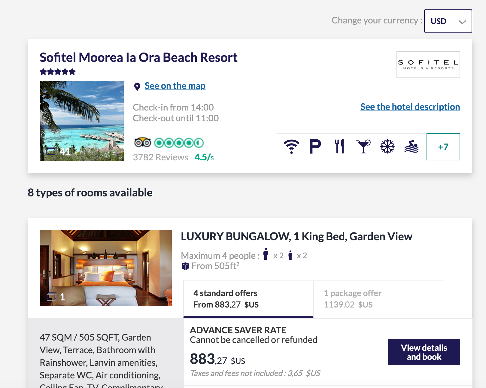 I really like the idea of booking the Sofitel Moorea la Ora Beach resort, but rates are really high at more than $880 a night.