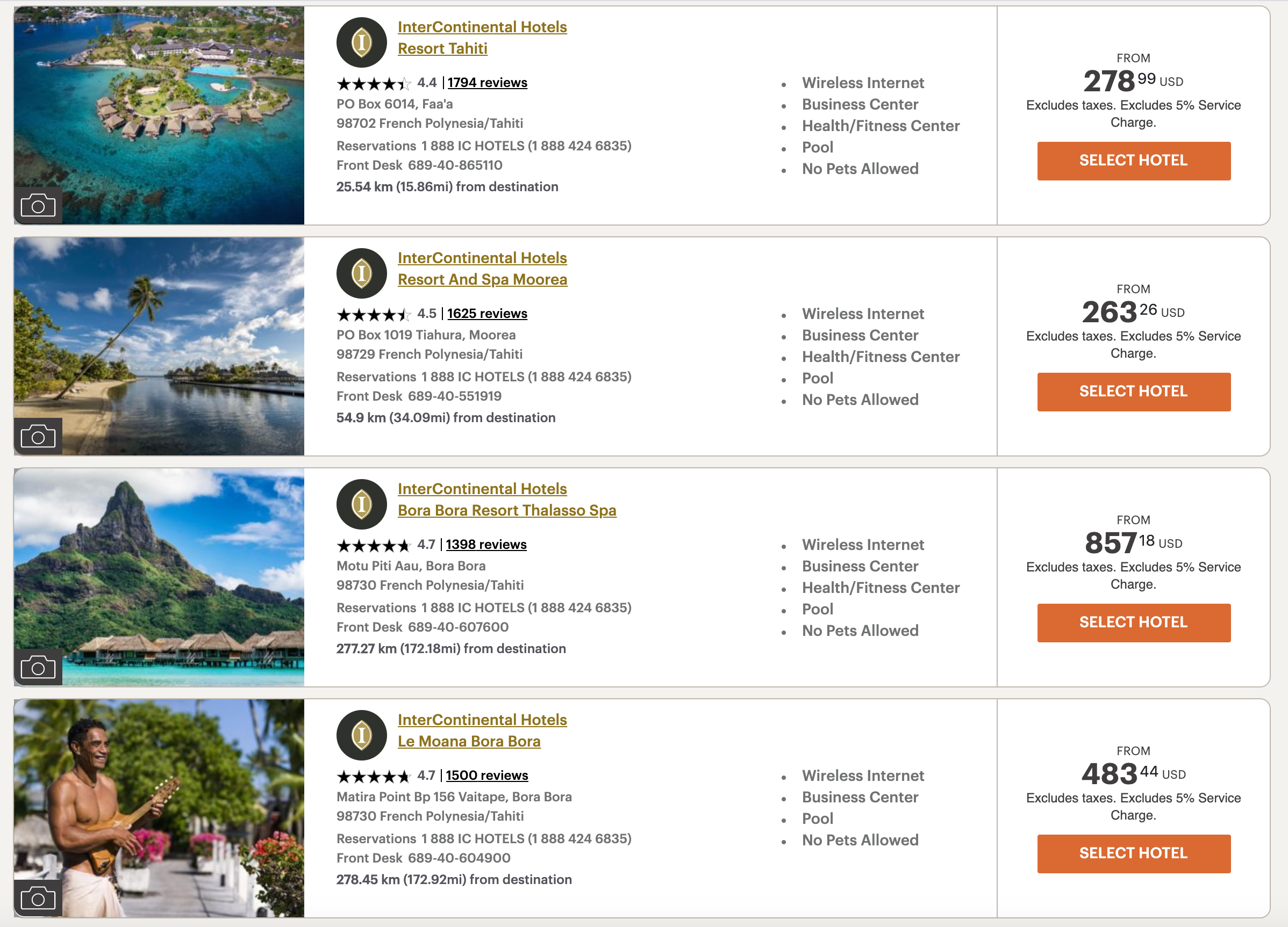 Similar restrictions are in effect for the formerly valuable IHG annual free-night certificate. All French Polynesia hotels are restricted from participation.