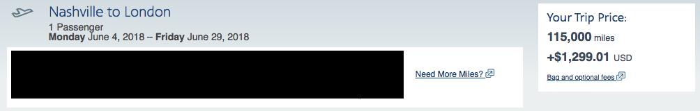In the past, a round-trip business class award ticket would've set you back roughly $1,300 in taxes and fees, regardless of which program you use to book. Here's a sample of a round-trip flight from Nashville (BNA) to London: