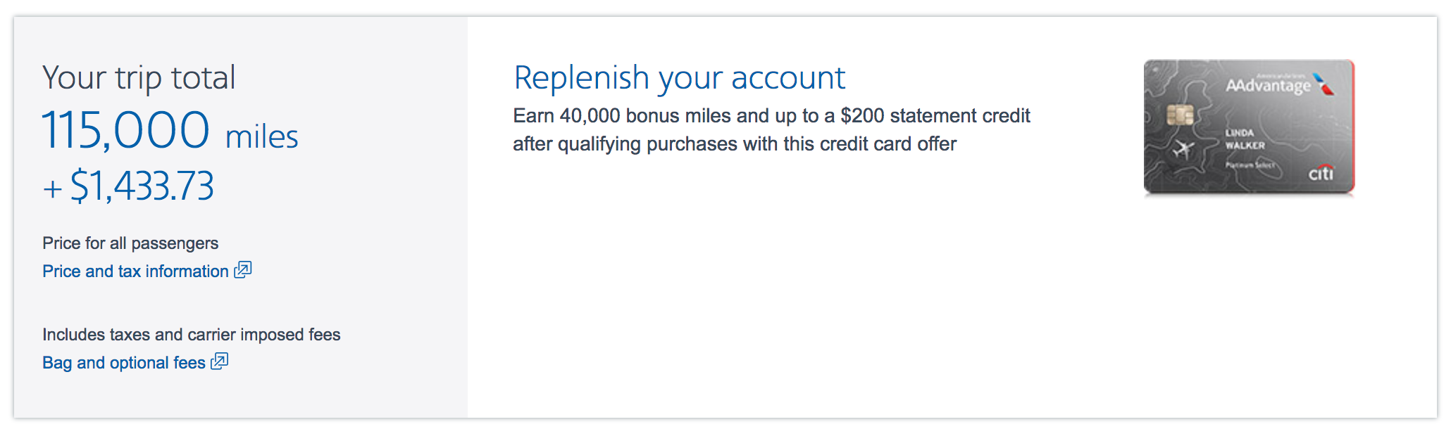 Here's the same flight through American's AAdvantage program: