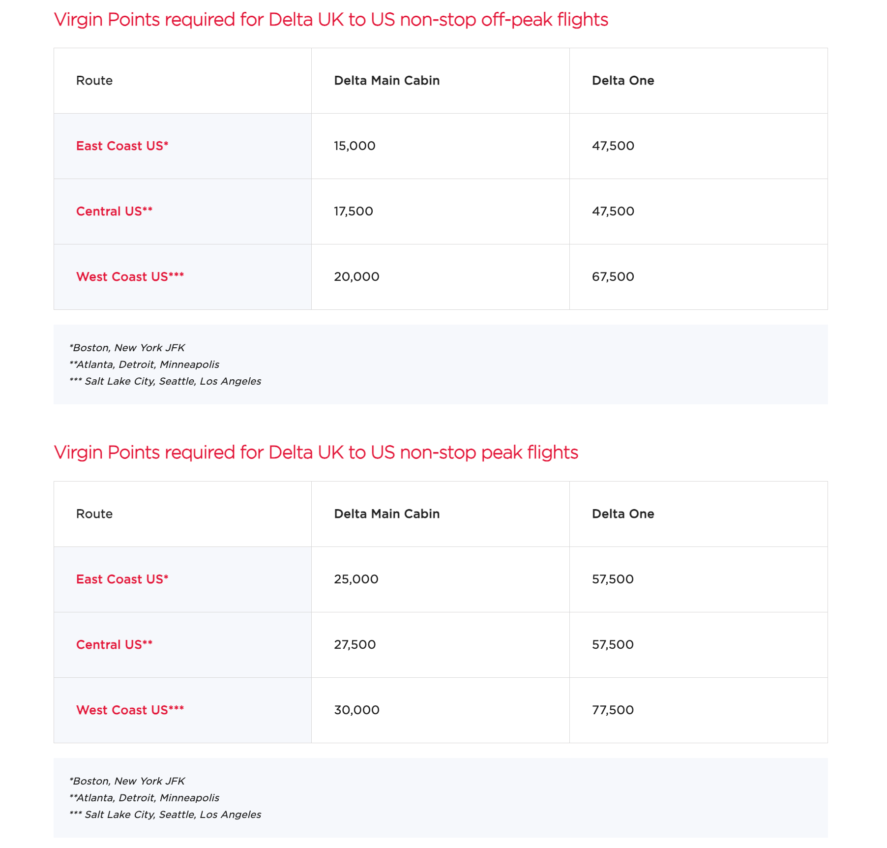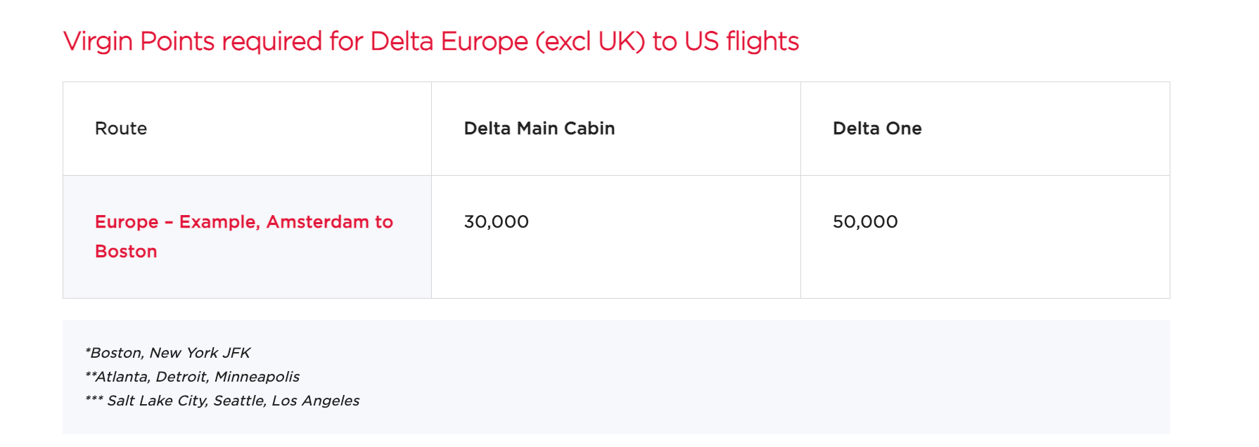 • Virgin regularly charges far fewer points than Delta's SkyMiles program charges for the same Delta flights.