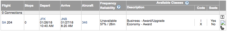 As an example, let's say you were looking to fly from New York-JFK to Johannesburg on Friday January 26. A quick search on ExpertFlyer finds business-class award inventory available (which you can then verify on United.com):