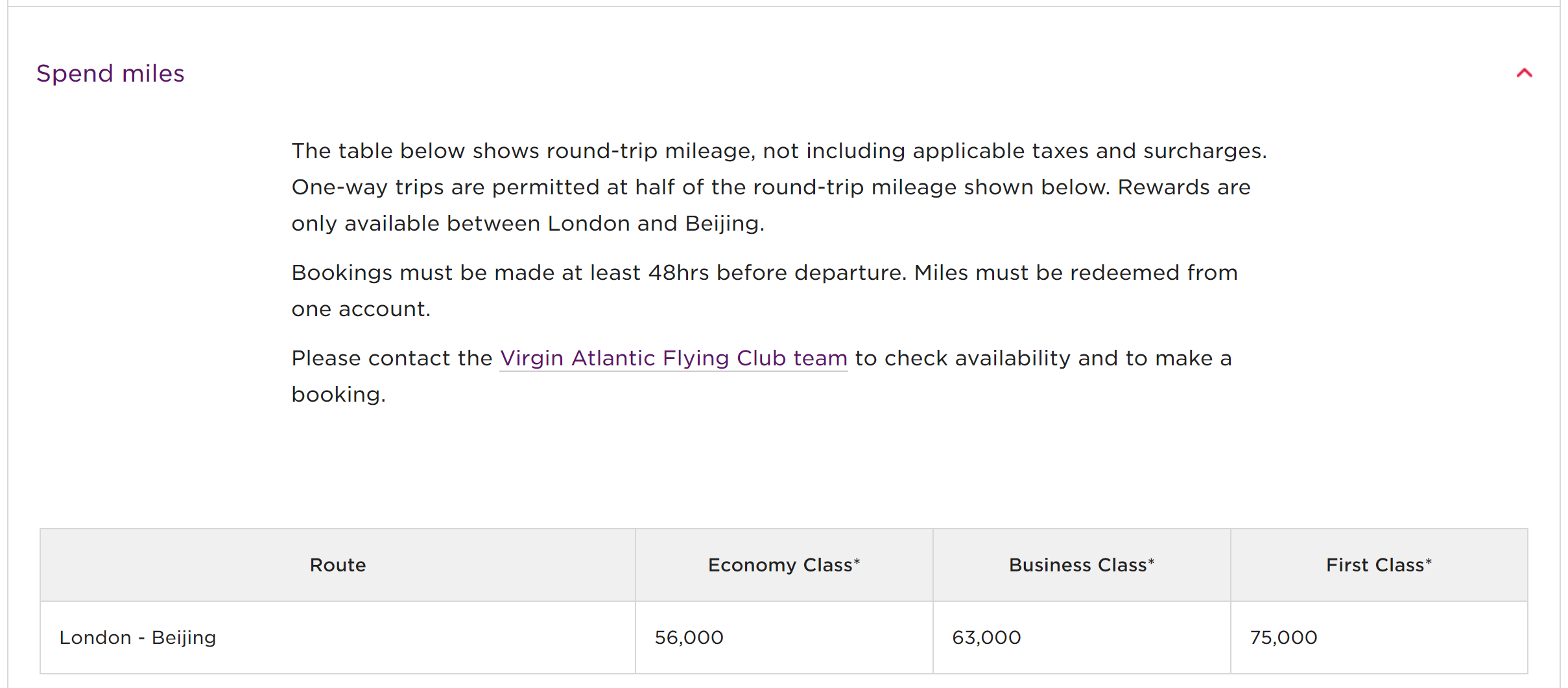 This sweet spot has likely survived this long due to its obscurity. You're going to need to transfer Citi ThankYou Points to Virgin Atlantic's Flying Club to book the only Air China redemption option: London - Beijing.