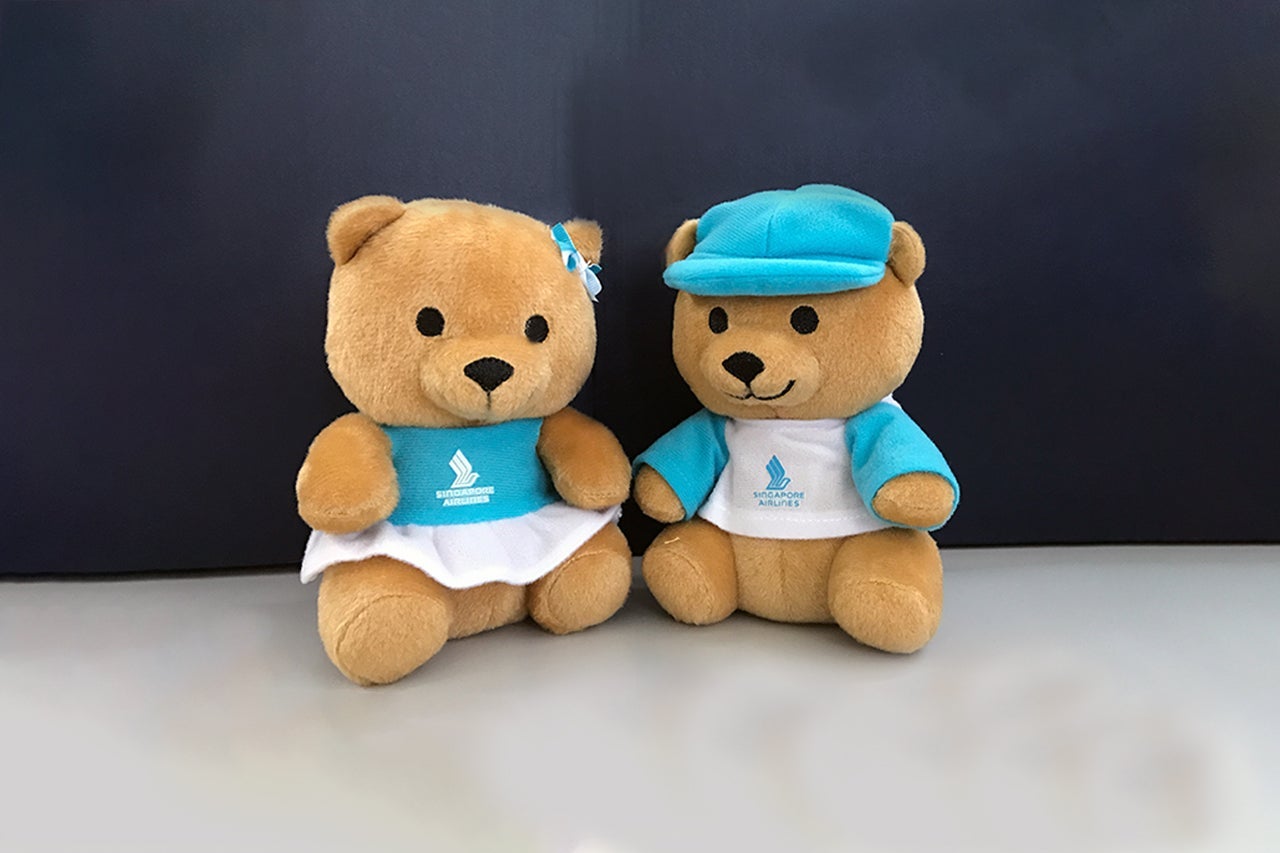 There are also specialty bears out there. For example, on the inaugural SQ22 flight, the world's longest flight, bears with a customized A350 Ultra Long Range T-shirt were gifted to passengers. At the time of writing, only three pairs of Singapore teddy bears were available for bidding on eBay, so they're quite exclusive.