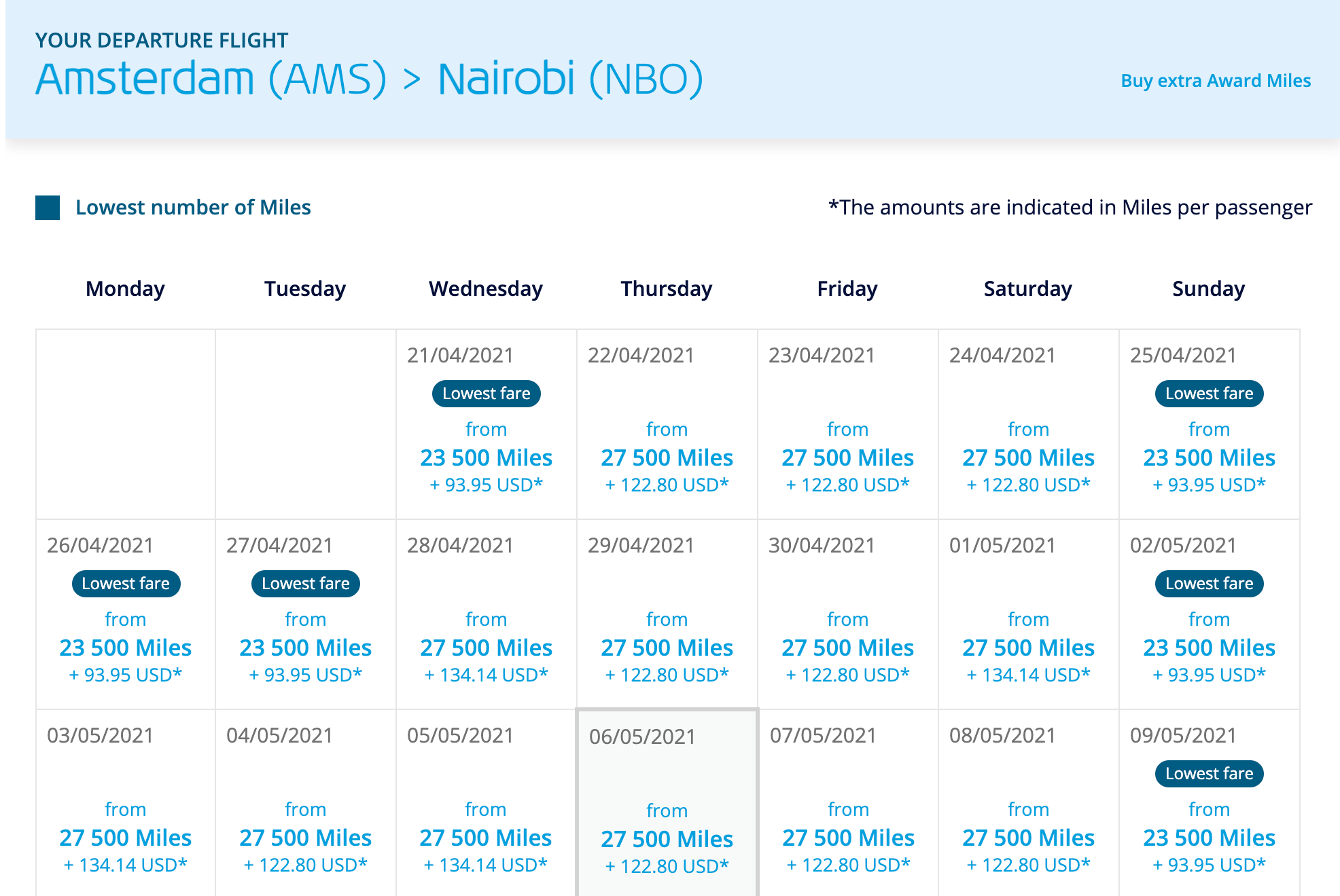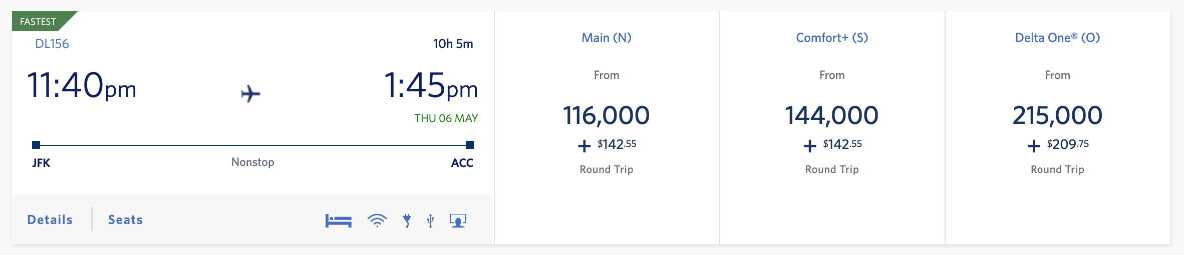 While you can fly nonstop to several destinations on the continent on Delta metal, you'll pay a premium. This flight to Accra will set you back 116,000 SkyMiles round-trip. However, you can also score round-trip tickets to Accra (ACC), Dakar (DSS), Nairobi (NBO) and other destinations throughout Africa for as low as 80,000 round-trip plus taxes on airlines like KLM.