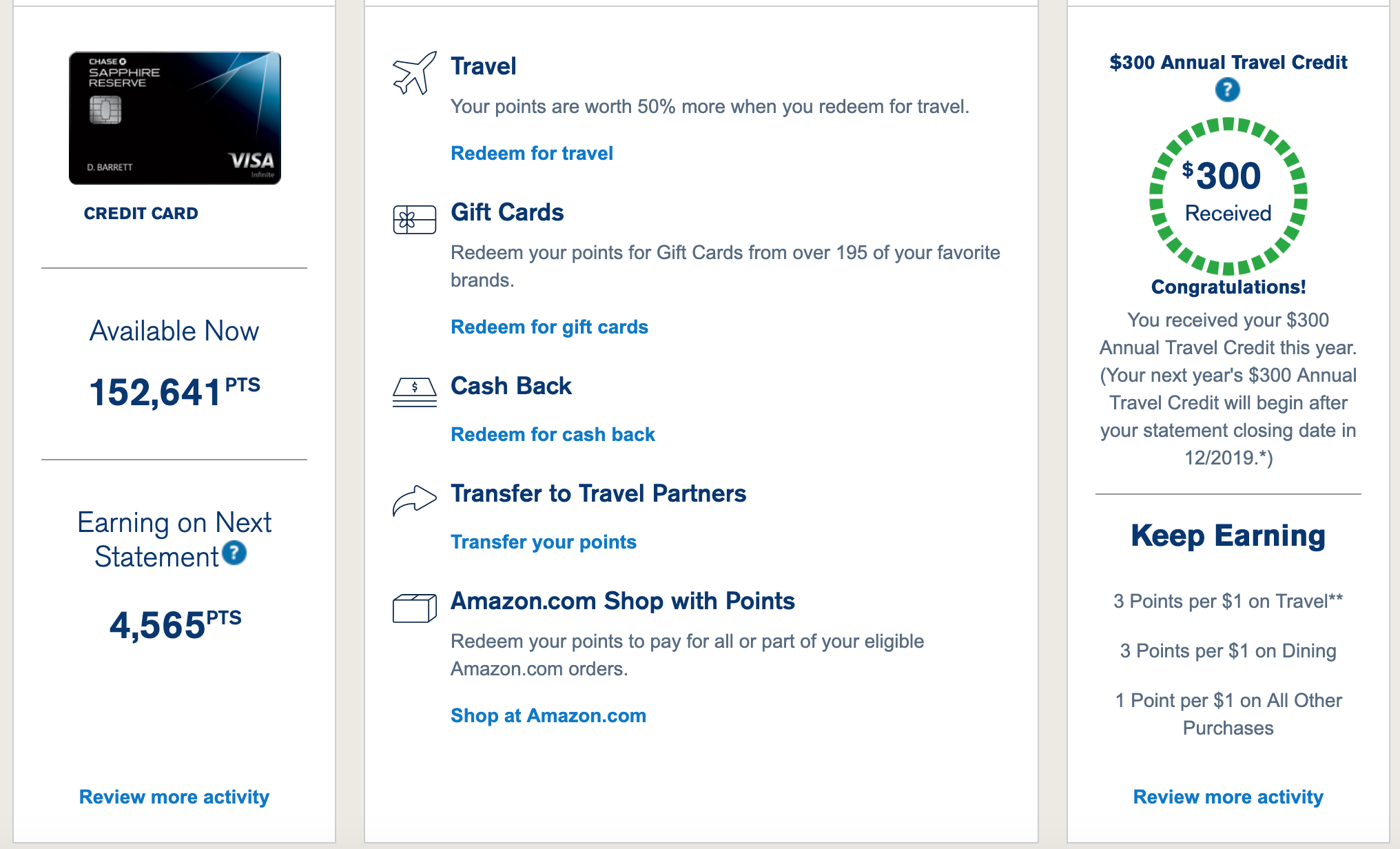 Now to get to Kayla's question. With a majority of credit cards, you earn your points based on the purchase and not when you pay your bill. If you look at my Chase Ultimate Rewards account for my Chase Sapphire Reserve, you'll see that I'm set to earn 4,565 points on my next statement. Chase will deposit these points into my account at the same time that my bill for this month becomes available, and I'll earn these points even if I haven't yet paid my bill.