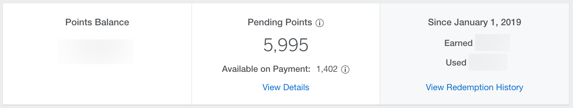 However, the 5,995 "Pending Points" will take a bit longer. Those correspond to purchases made since his last statement closed. Once that statement closes, they'll shift into the "Available on Payment" category and will then post when he submits a payment, and it's worth noting that even a minimum payment on an Amex account will result in the points posting.