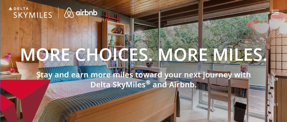 • Delta Air Lines SkyMiles: Earn 1 mile for every $1 spent with Airbnb on qualifying stays. Click here to earn SkyMiles.