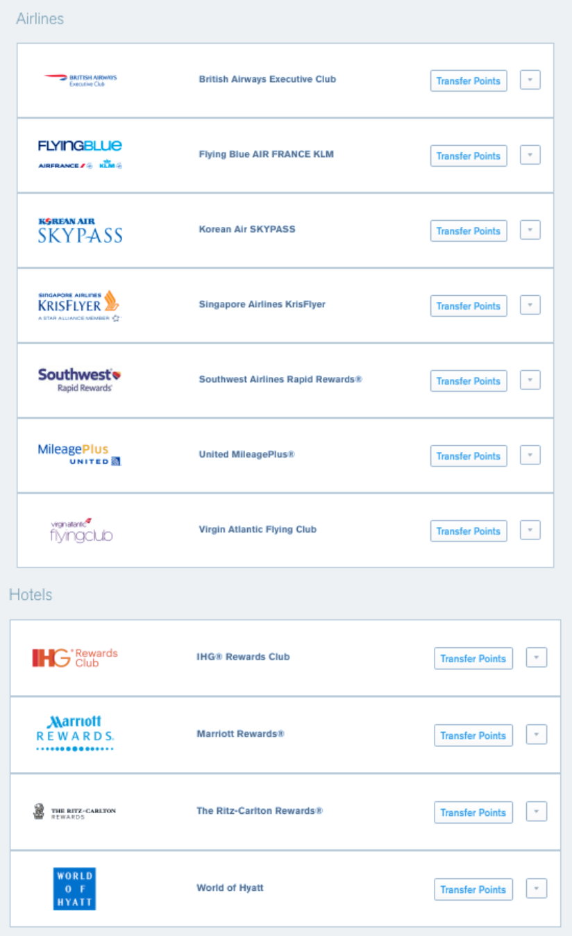 - For transferring to hotel brands, see how to transfer to IHG, Hyatt, Marriott and Ritz-Carlton.
