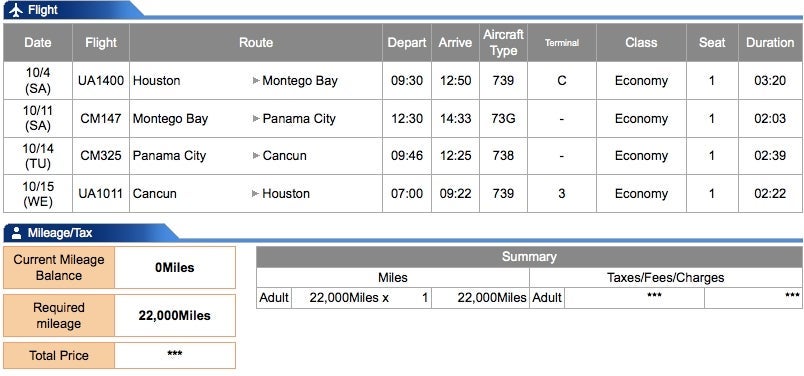 That itinerary shown below would cost the same 22,000 miles as just going Houston - Montego Bay - Houston since they are both in the 2,001 - 4,000 mile range. That particular trip rings in at 3781 miles.
