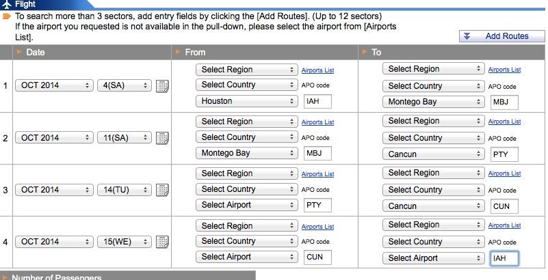 For example, if we wanted to maximize the wedding we are attending in Jamaica we could fly from Houston - Jamaica - Panama City - Cancun - Houston and stop in each point for however long we wanted along the way. That is just an example as you could put together something entirely different. You can also make use of an open-jaw and go from say Houston - Montego Bay (open jaw - book your own flight elsewhere) Grand Cayman - Panama City - Cancun - Houston.