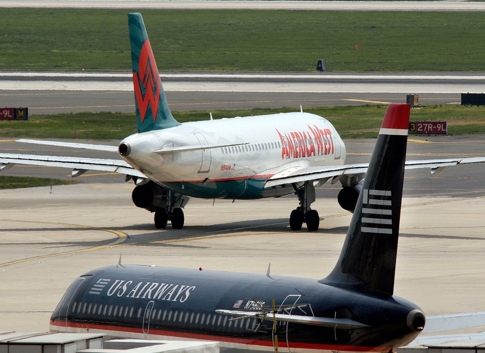 American Airlines took over TWA in 2001, and America West merged with US Airways in 2005, though it kept the US Airways moniker.