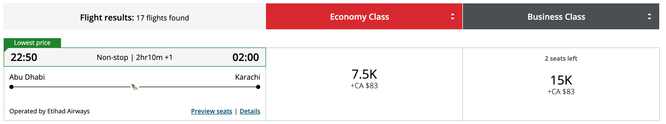 I then looked for the Abu Dhabi-to-Karachi segment: