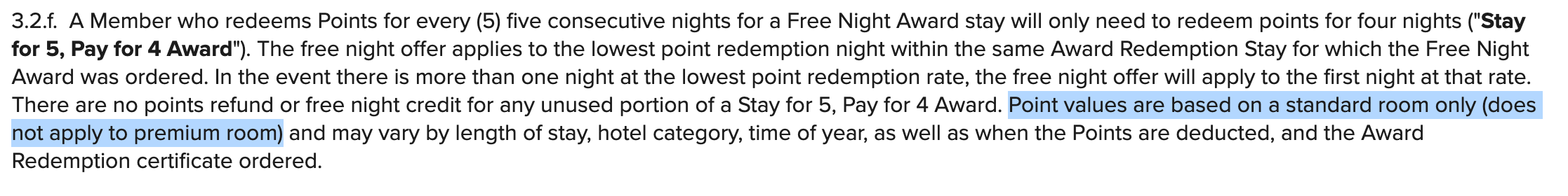 While IHG's reward night is the most restrictive (only available to IHG Rewards Club Premier cardholders), the fact that it's a complimentary fourth night on award stays instead of a fifth night free also makes it more valuable. Similar to Marriott and Hilton, IHG includes language in the card application page making clear that this benefit only applies to standard rooms: