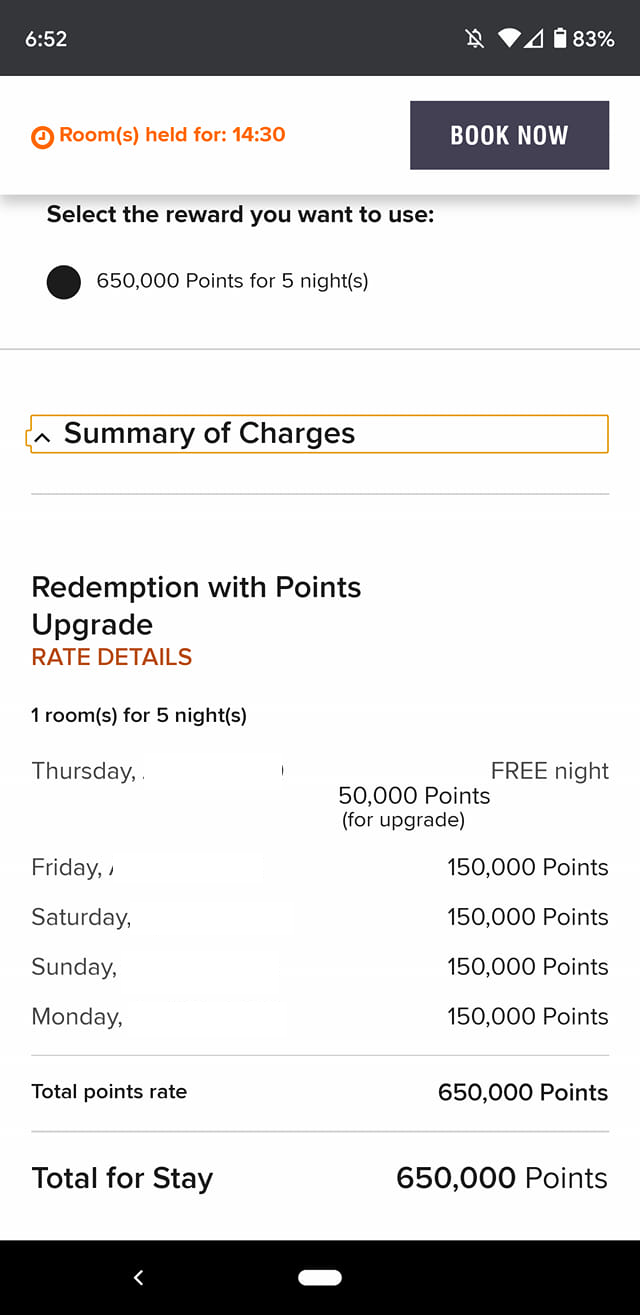 Jeff was kind enough to provide a screenshot in the TPG Lounge that clearly explains what's going on. He was trying to book a five-night stay at the St. Regis Punta Mita, a stunning Category 8 hotel. While awards at this property start at 85,000, all five of Jeff's nights were during peak travel dates, costing 100,000 points per night. In addition, he opted to pay 50,000 points per night to upgrade to a suite, bringing his total cost to 150,000 points per night. This would be 750,000 points total for a five-night stay, but he expected that the fifth night free would bring his cost down to 600,000 points.