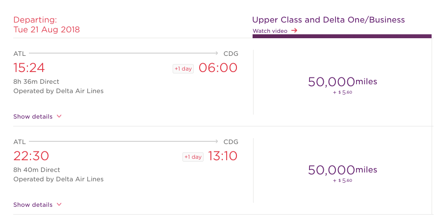 We recently took a look at the fantastic value you can get by redeeming Virgin Atlantic miles for Delta-operated transatlantic flights. One of the most lucrative award possibilities is booking a one-way Delta One flight to Europe for just $5.60 out of pocket and no fuel surcharges (London is the exception, where fuel surcharges are passed on to you). Simply transfer your Chase points to your Virgin Atlantic account and search the route and dates you'd like. Searching can be a bit tricky, so make sure to read our guide to find flights like this: