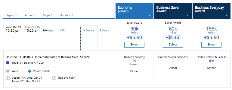 Availability to the popular destinations of Brazil and Argentina can be tight, so make sure to check all US gateways like Houston, Dulles and Newark to find a wide-body, lie-flat seat for the ride down south.