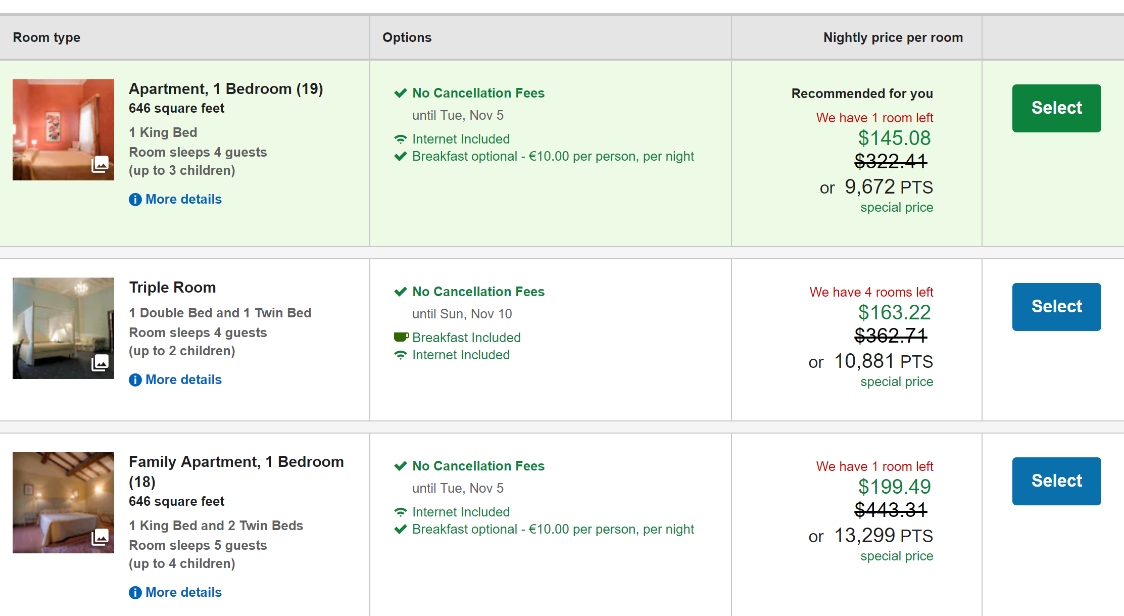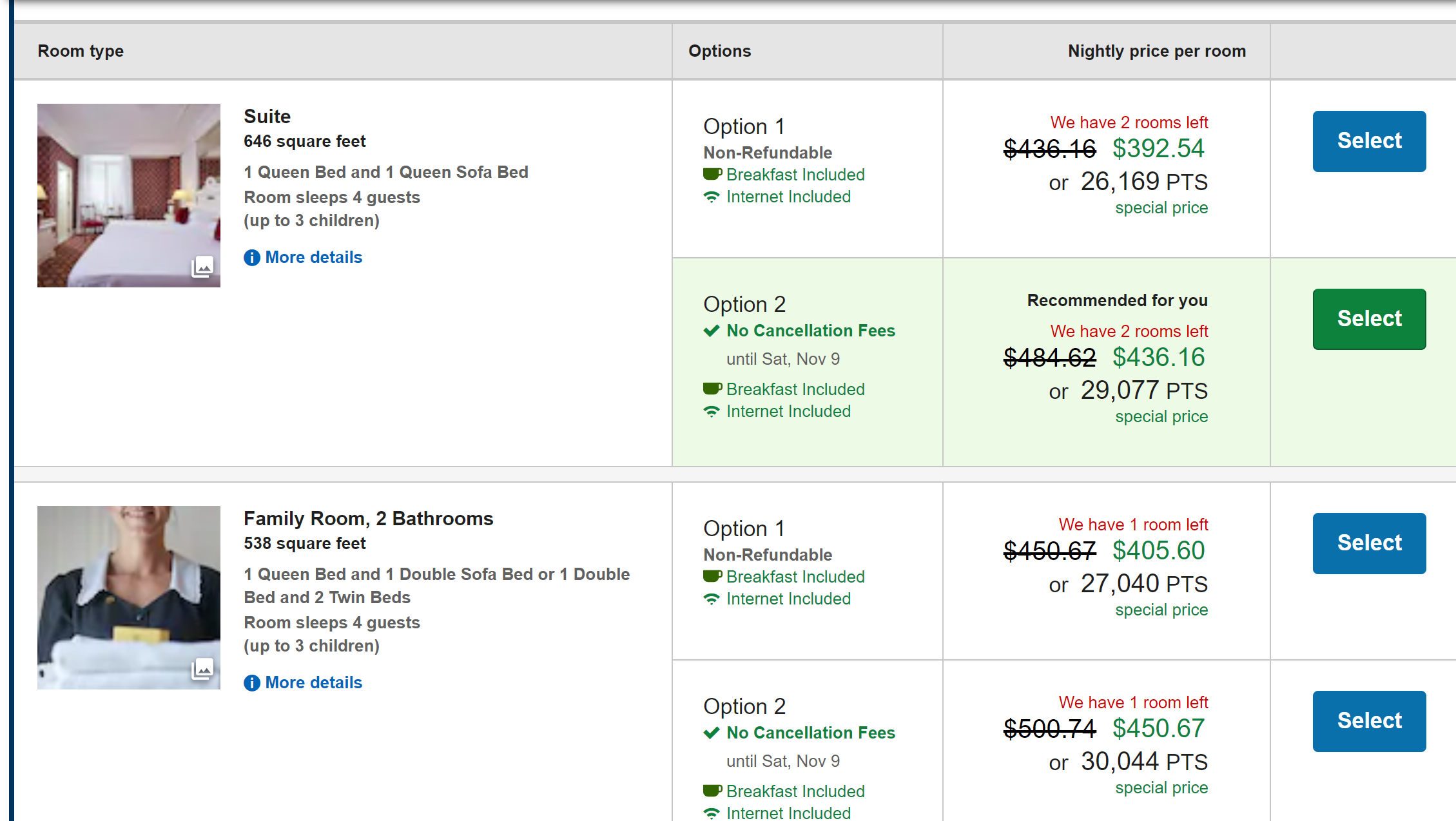 Family Rooms: From 9,672 points (the exact number of points is dynamic and changes based on the season and which type of Chase card you have)