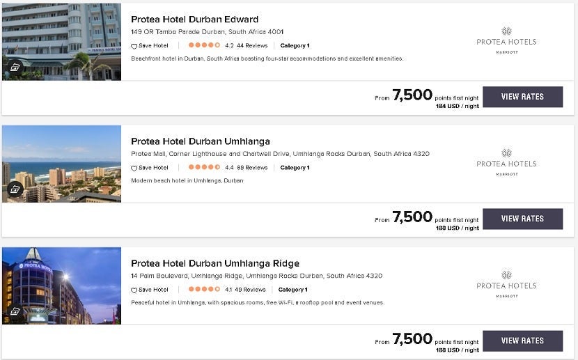 Here are a few examples of Protea Hotels in Marriott's Category 1 that offer exceptional value.