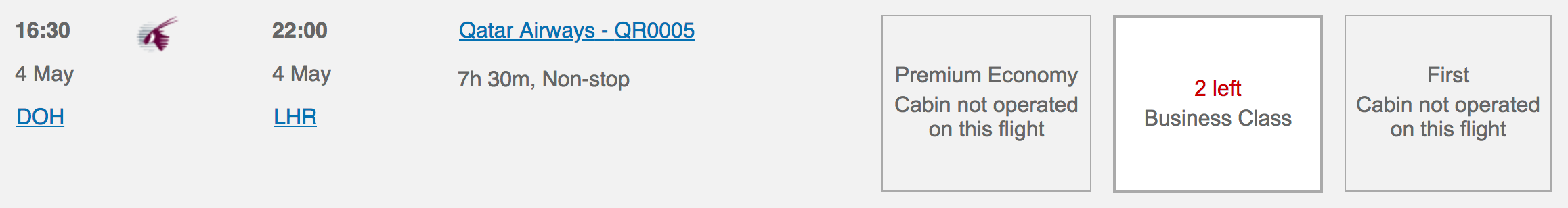 Thankfully there are often one or two Qsuite awards available, which should provide plenty of comfort for the short seven and a half hour hop between Doha (DOH) and London (LHR).