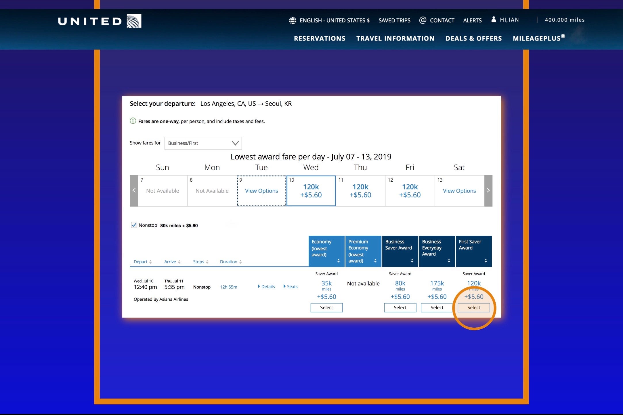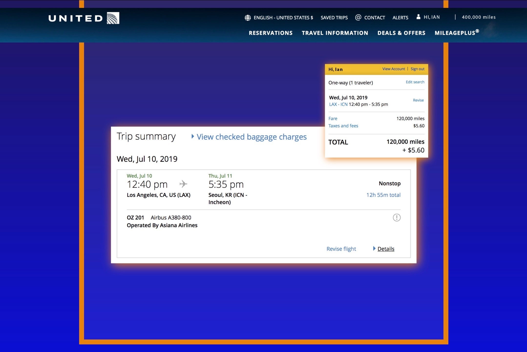 In this month's episode of "Have Points, Will Travel," Ian Agrimis has a free weekend and 120,000 United miles to burn. One of the best uses of United miles has long been for partner award tickets, and that's going to be even more true when the airline removes award charts for United-operated flights later this year. So, when Ian came across award space for an Asiana first class flight from Los Angeles (LAX) to Seoul (ICN), he didn't hesitate to book.