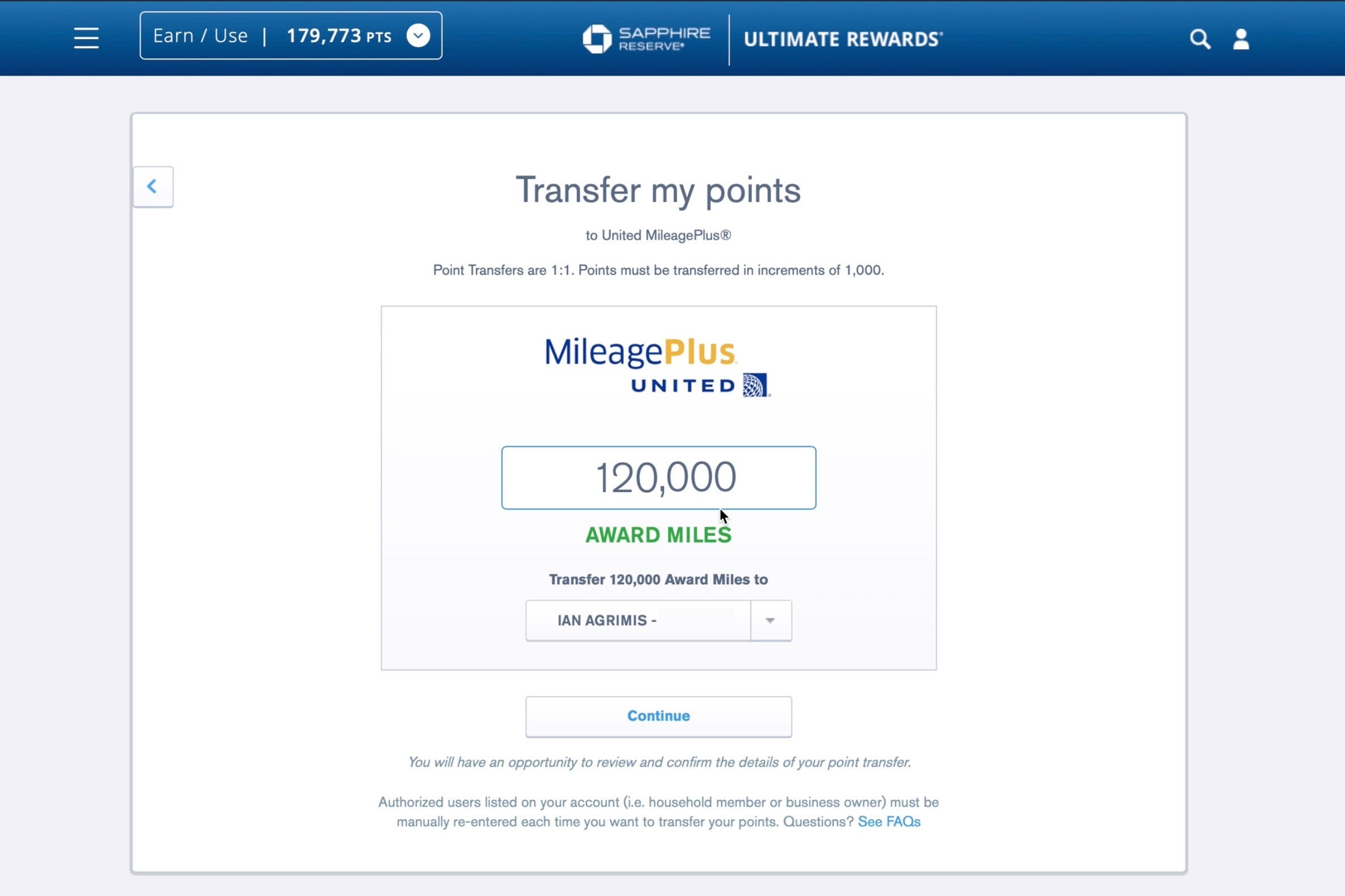 To do this, go to the Ultimate Rewards homepage and sign in to your online Chase account. Then, scroll down and click where it says "Transfer your points," look for United MileagePlus and click "Transfer Points." You'll then be asked for your MileagePlus account number and how many points you want to transfer.
