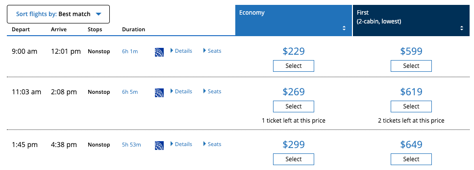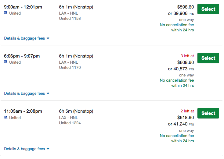 However, the cash price is the same (note that United's site rounds the prices up to the nearest dollar).