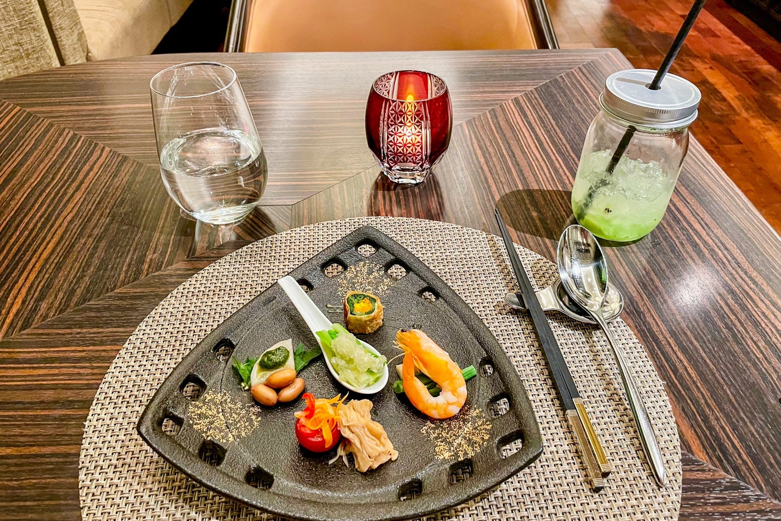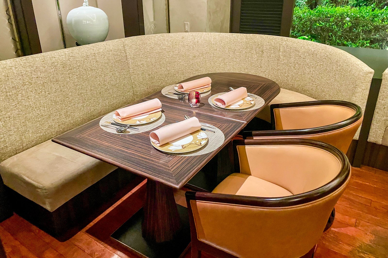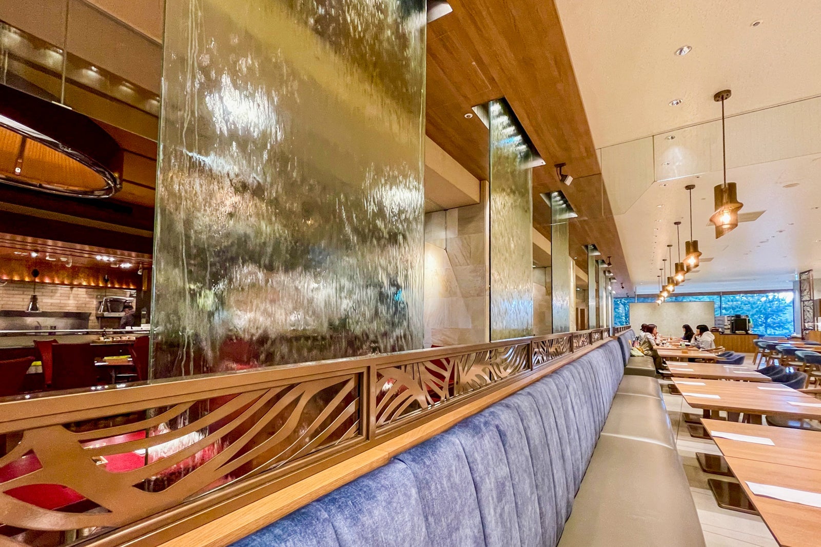If you have Hilton Honors elite status, you can ask to be seated in the quieter section behind the waterfall.