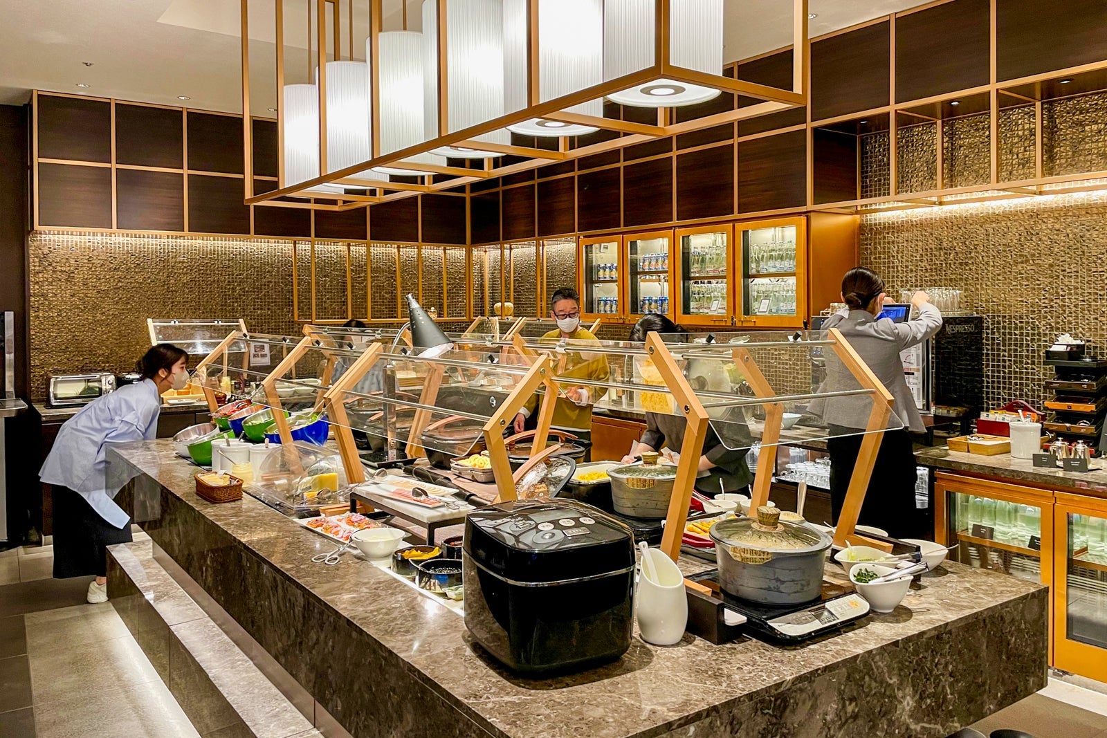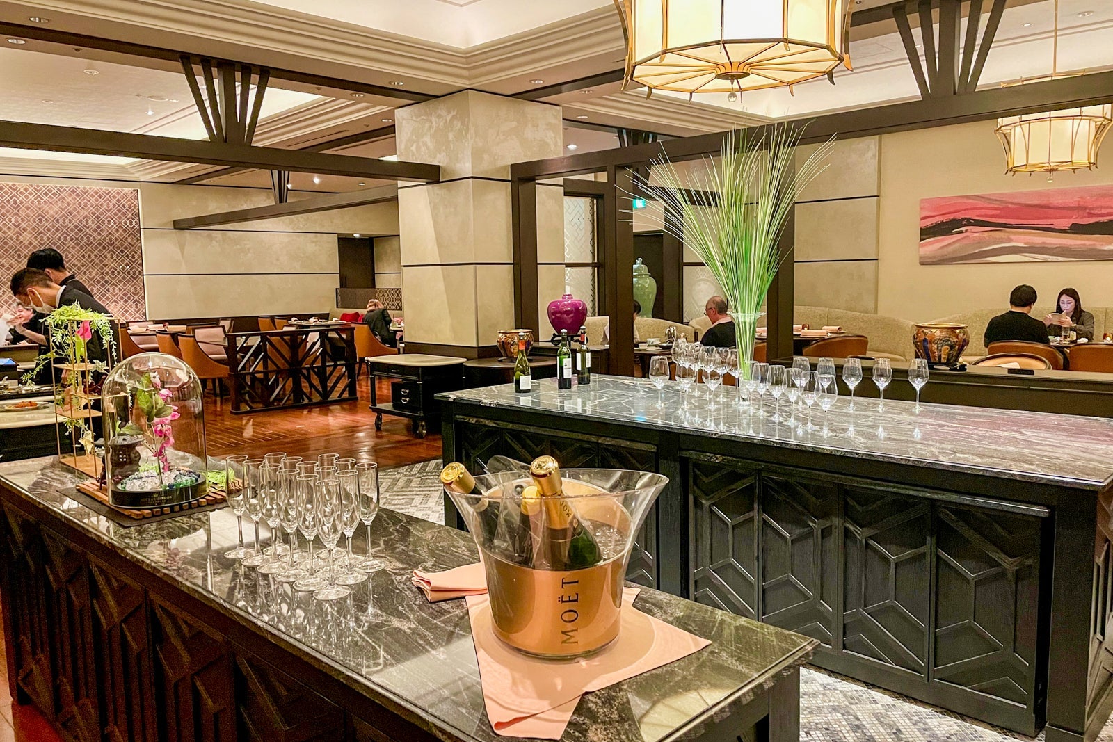 Better yet, if you have Diamond status, the executive lounge is a much more tranquil option, albeit with a more limited food selection.