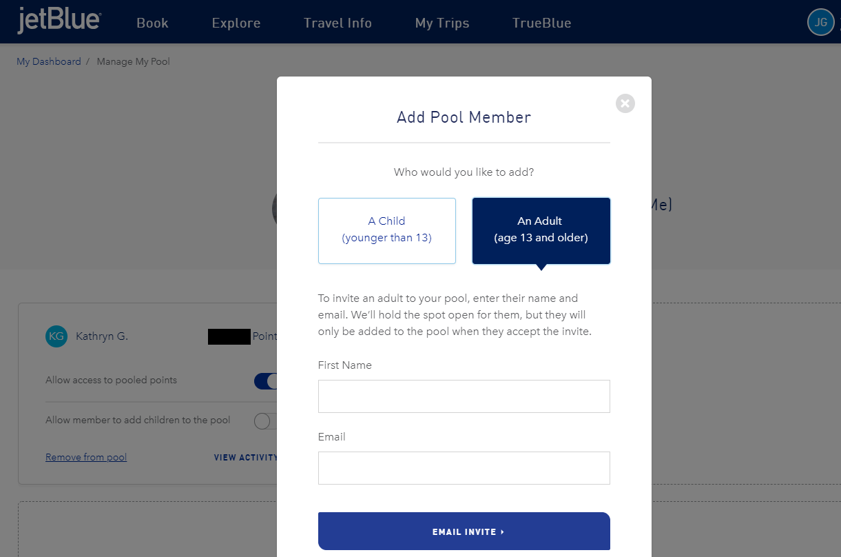 Since 2013, JetBlue has allowed families to pool points through Family Pooling. For the past five years, that program limited pools to no more than two adults and five children -- meaning it was only really designed for you to be able to pool points with your partner and kids. But, in August 2018, JetBlue announced a revamp of this program, renaming it Points Pooling and expanding the program to allow members to pool points with friends and/or extended family members.