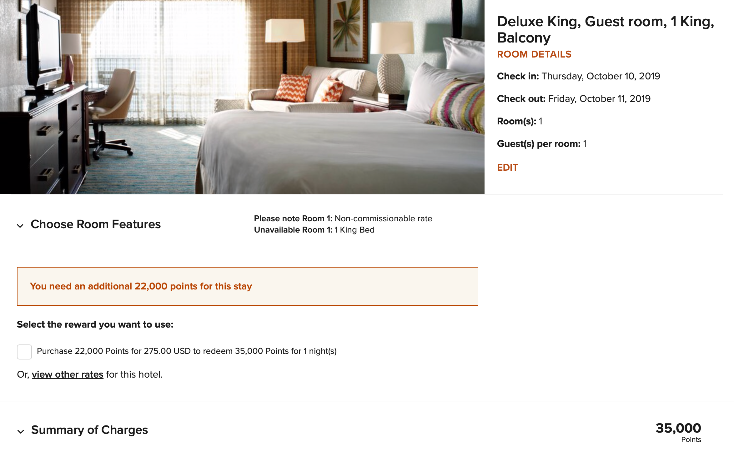 Note how the option to redeem your free night certificate doesn't appear, unlike when you try to book a Category 5 hotel, like at the St. Kitts Marriott Resort & the Royal Beach Casino:
