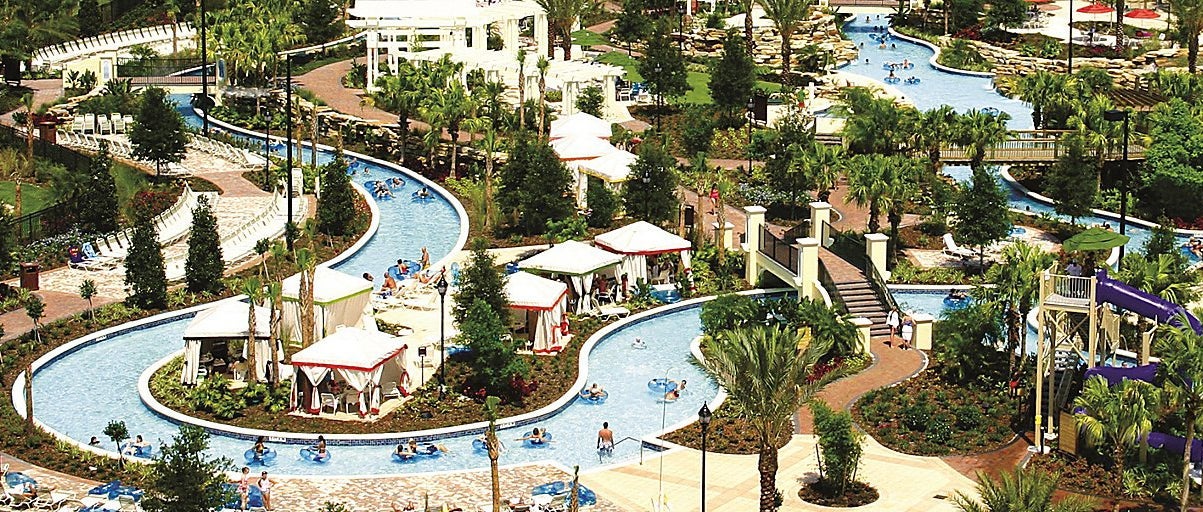 Among the recreational facilities are seven pools, four waterslides and a lazy river, tennis, racquetball, basketball or golf, including mini-golf for the kids.